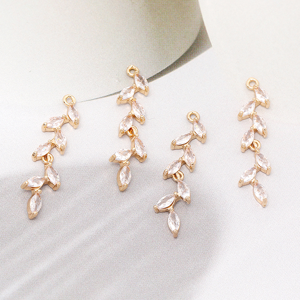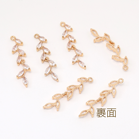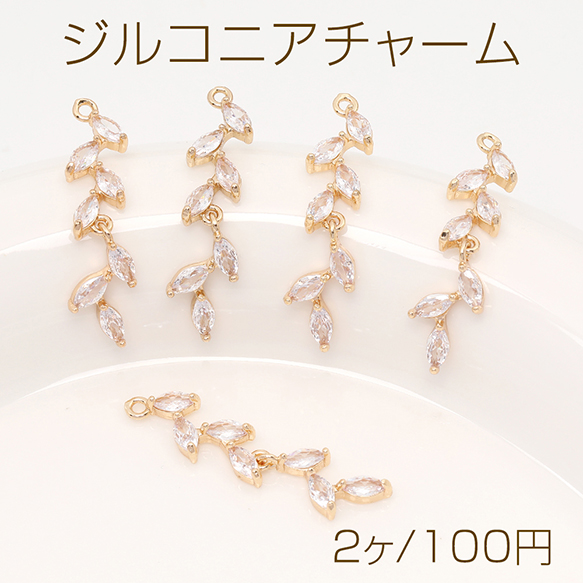 ジルコニアチャーム リーフ 1カン 7×30mm ゴールド(2ヶ)