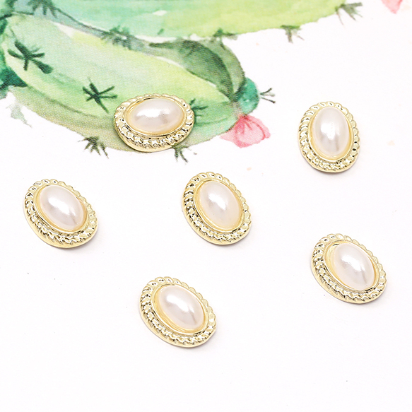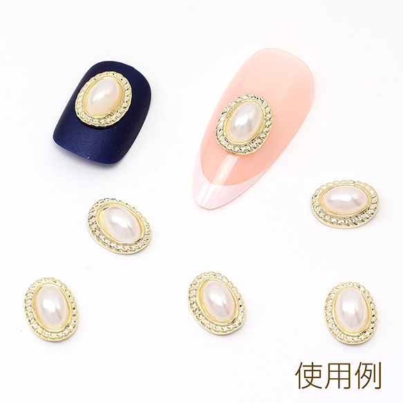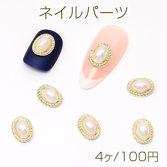 ネイルパーツ メタルネイルパーツ オーバル パール付き 7×9mm(4ヶ)