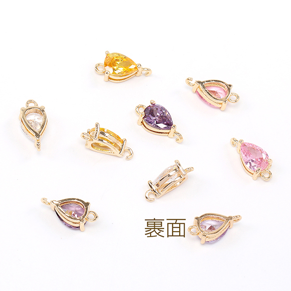 ジルコニアチャーム しずく型 2カン 6×13mm ゴールド(2ヶ)