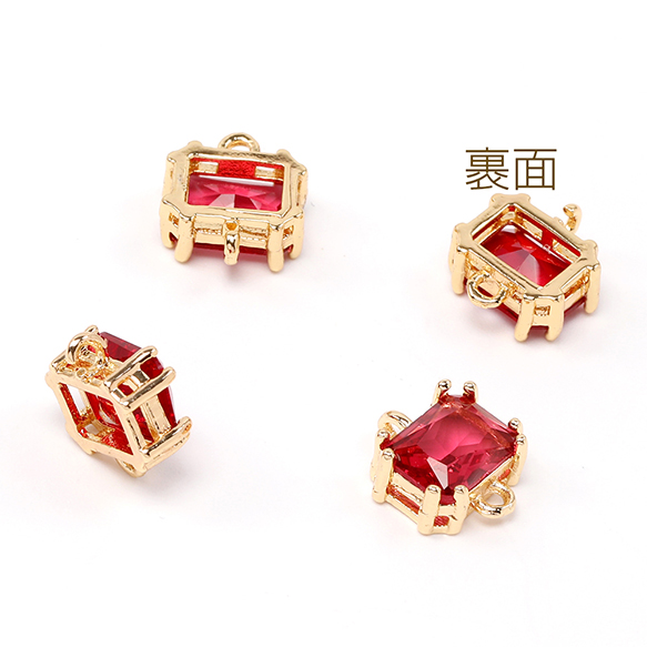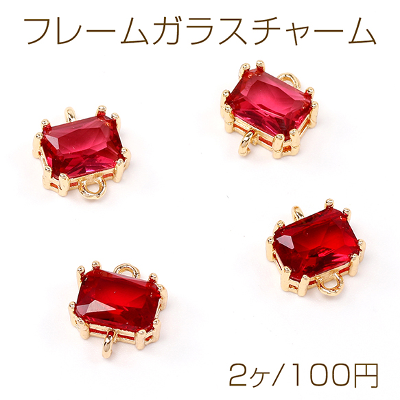 フレームガラスチャーム 長方形型 2カン 9.5×10.5mm ゴールド(2ヶ)