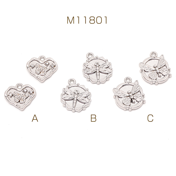 高品質メタルチャーム ハートと蝶 不規則型とトンボ 不規則型と蝶