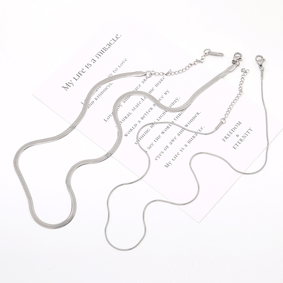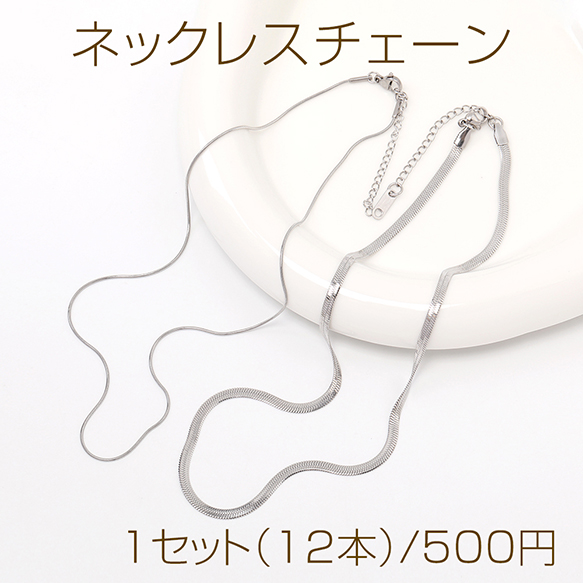 ステンレス製 ネックレスチェーン ロジウム