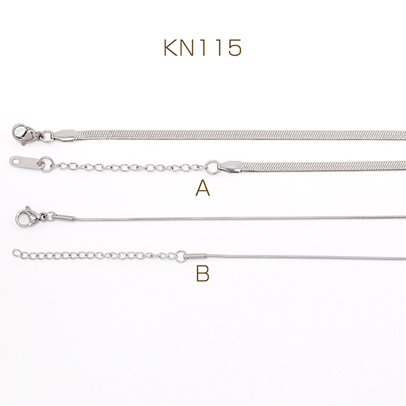 サイズ:【A】約3mm(全長約40+5cm)【B】約2mm(全長約40+5cm)