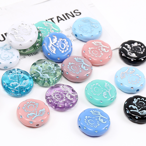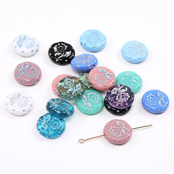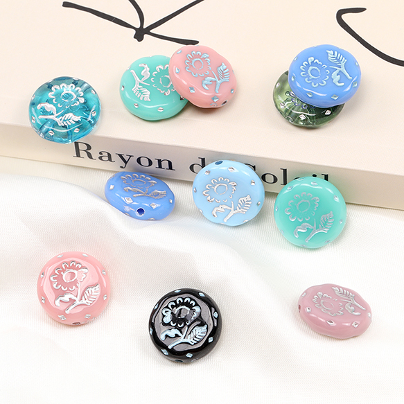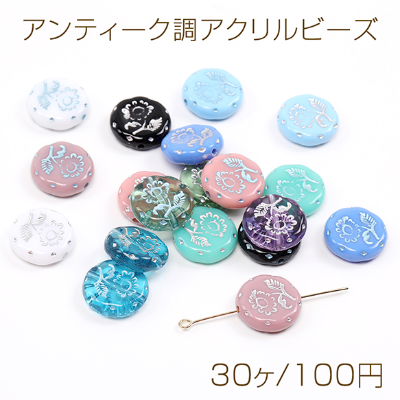 アンティーク調アクリルビーズ コイン型 ひまわり 16mm(30ヶ)