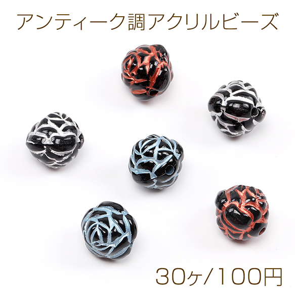 アンティーク調アクリルビーズ バラ 8.5mm(30ヶ)