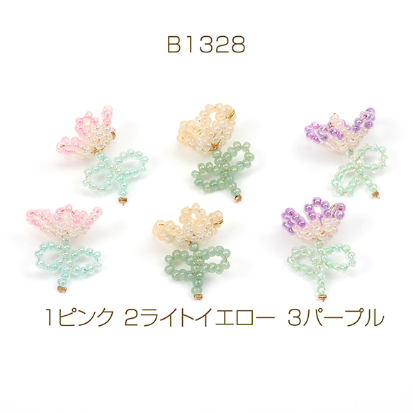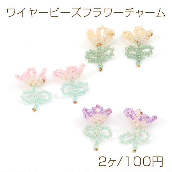 ワイヤービーズフラワーチャーム 13×20mm(2ヶ)