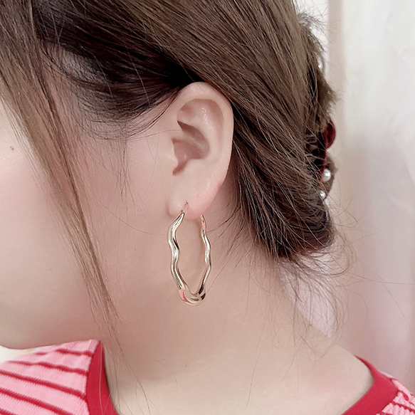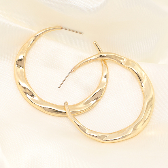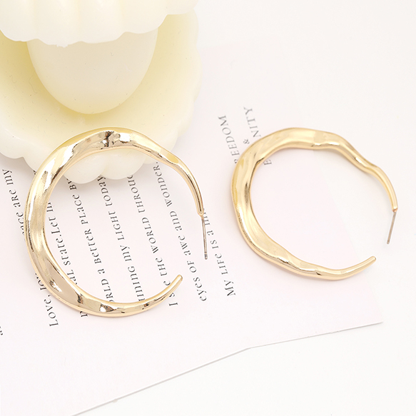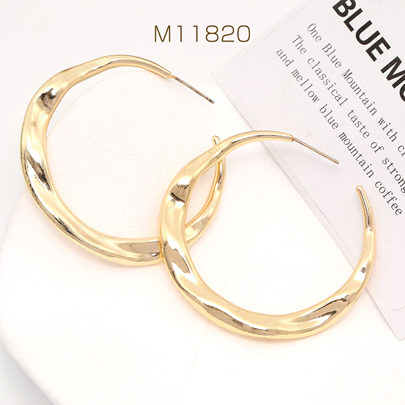 デザインピアス 不規則Cフープ 50mm ゴールド(2ヶ)