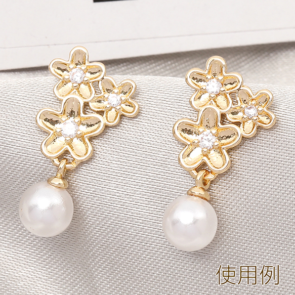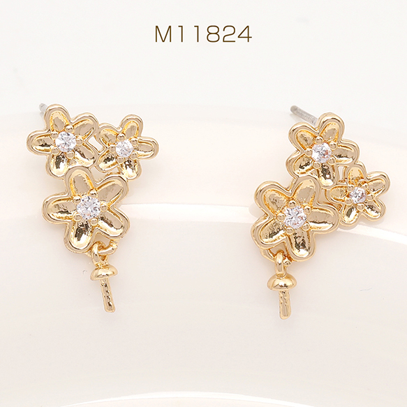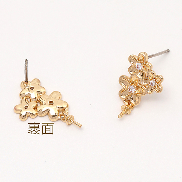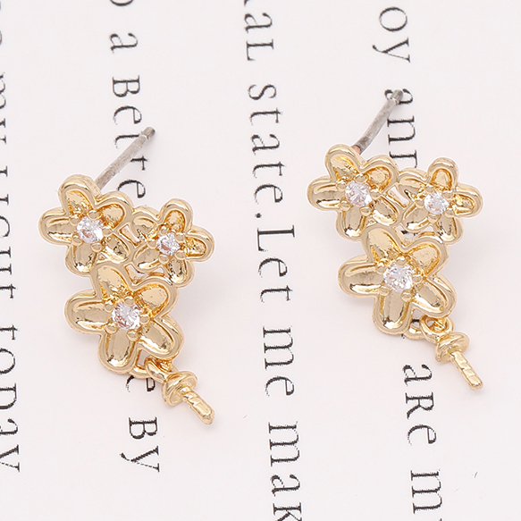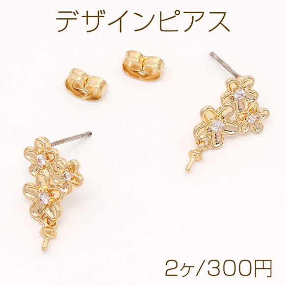 デザインピアス 3連フラワー ジルコニア付き デザインヒートン付き 11×12mm ゴールド(2ヶ)