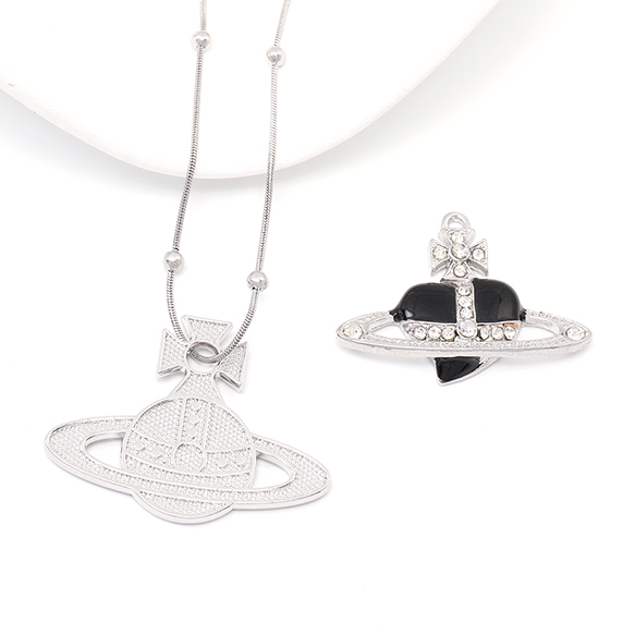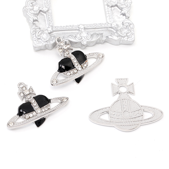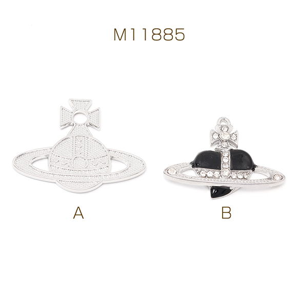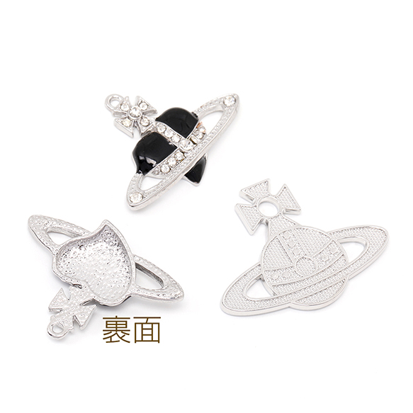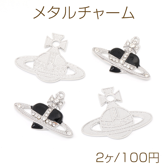 メタルチャーム ラインストーン付きチャーム 土星 ロジウム
