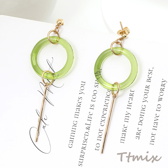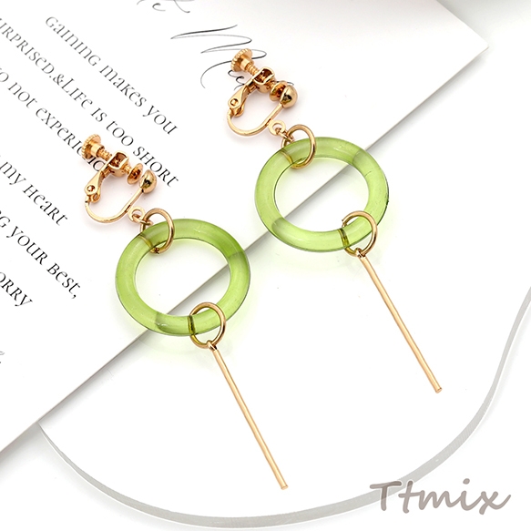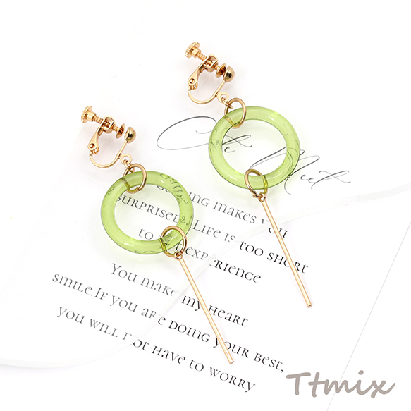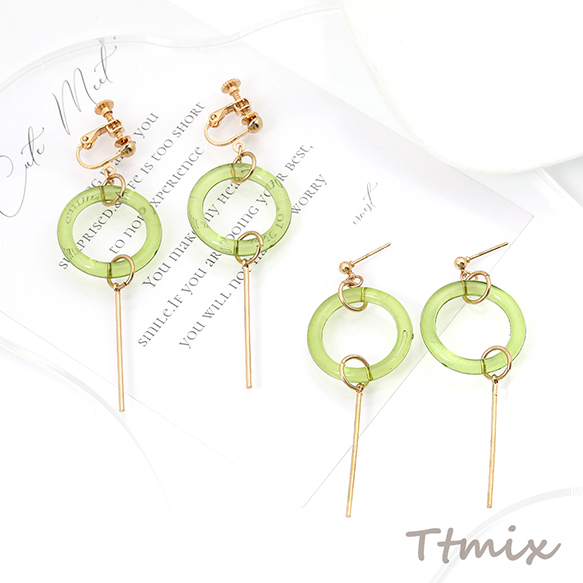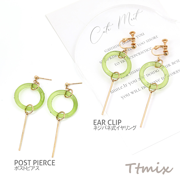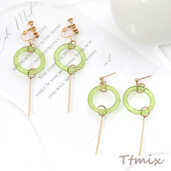 デザインピアス ネジバネ式イヤリング ゴールド×グリーン(1ペア)
