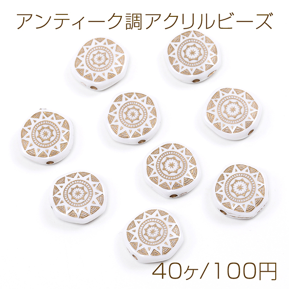 アンティーク調アクリルビーズ 不規則コイン型 17.5×18mm(40ヶ)