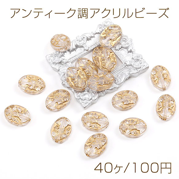 アンティーク調アクリルビーズ オーバル 13×18mm(40ヶ)