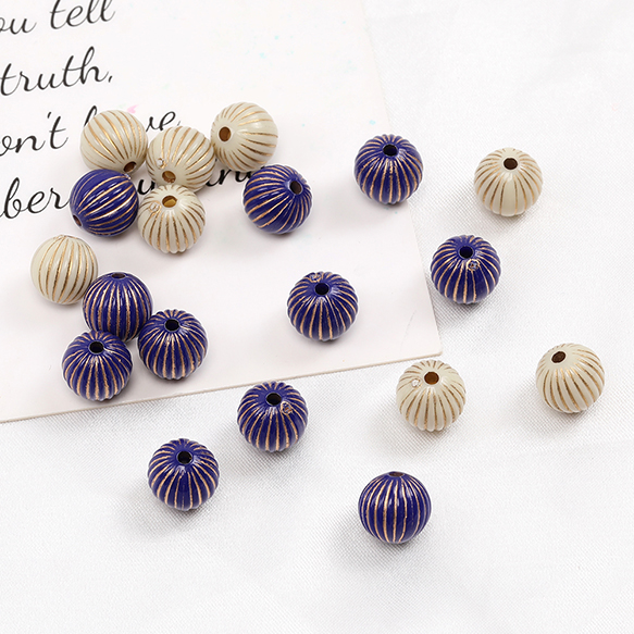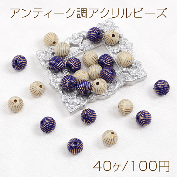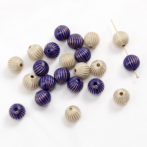 アンティーク調アクリルビーズ 筋入り丸玉 9.5mm(40ヶ)