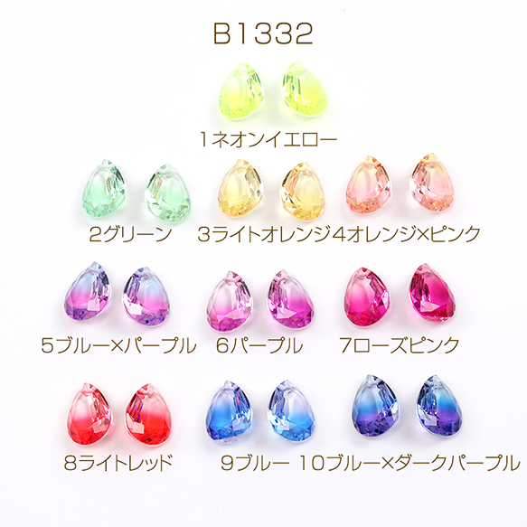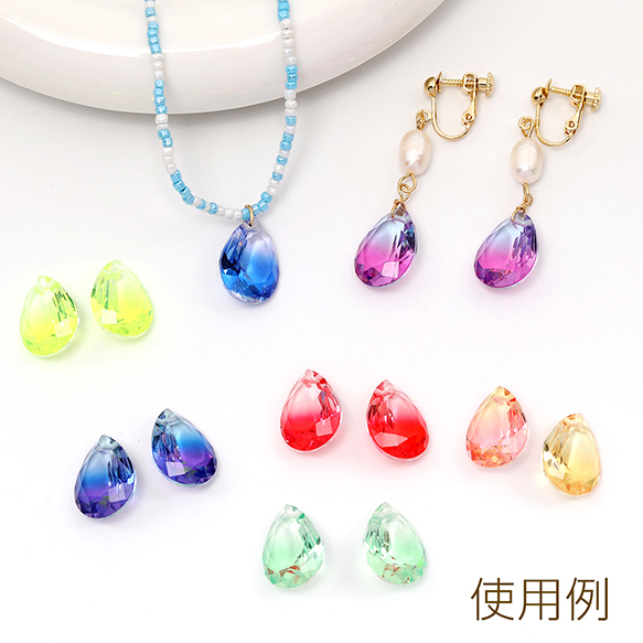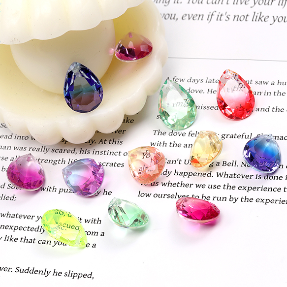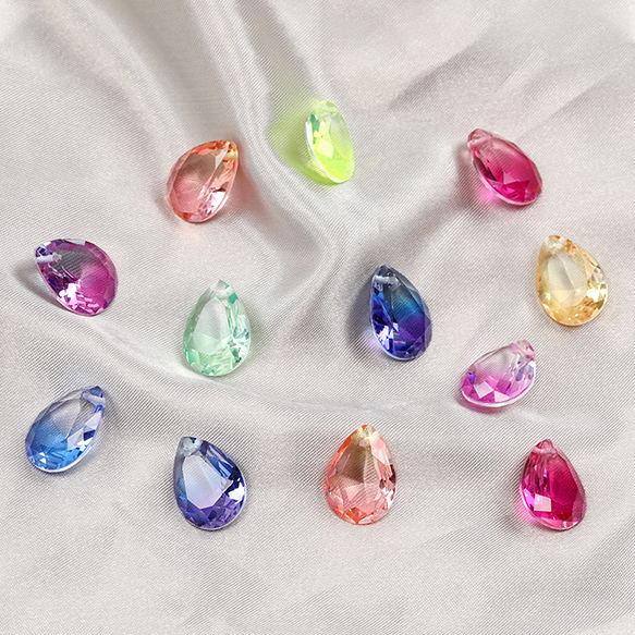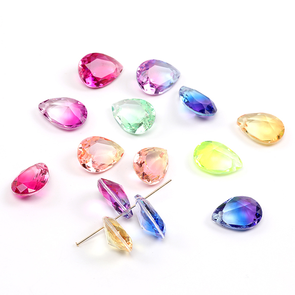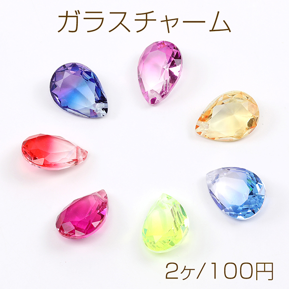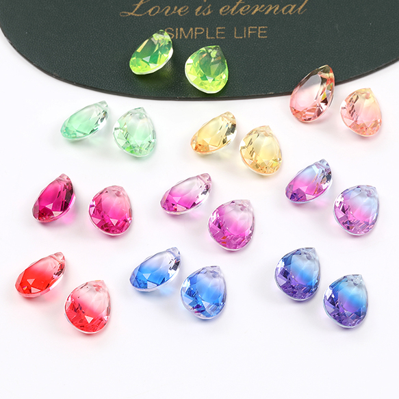 ガラスチャーム しずく型カット 1穴 13×18mm グラデーションカラー(2ヶ)