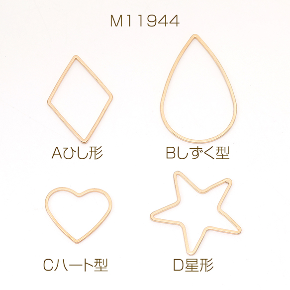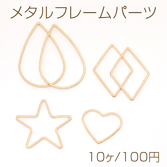 メタルフレームパーツ ひし形 しずく型 ハート型 星形 ゴールド(10ヶ)