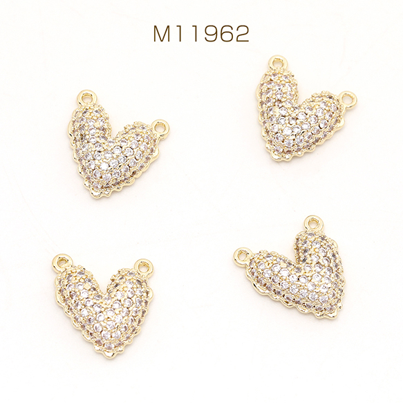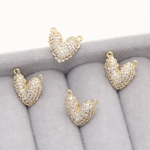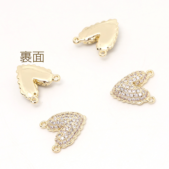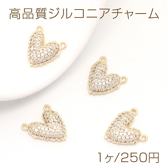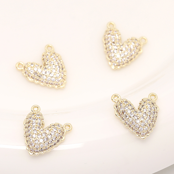 色褪せにくい14KGPゴールドメッキ 高品質ジルコニアチャーム ハート型 2カン 12×13mm(1ヶ)