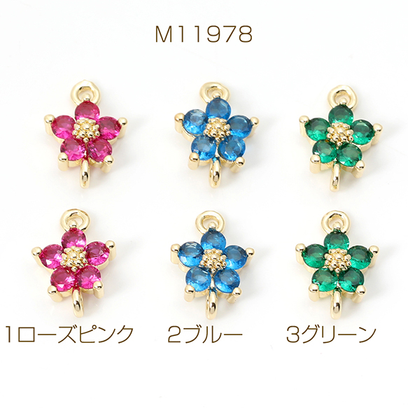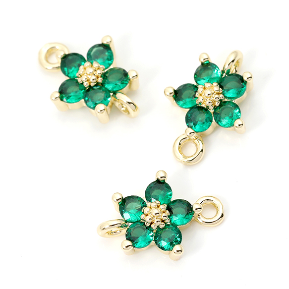 色褪せにくい14KGPゴールドメッキ 高品質フレームガラスチャーム フラワー 五弁花 2カン 8×12mm(2ヶ)