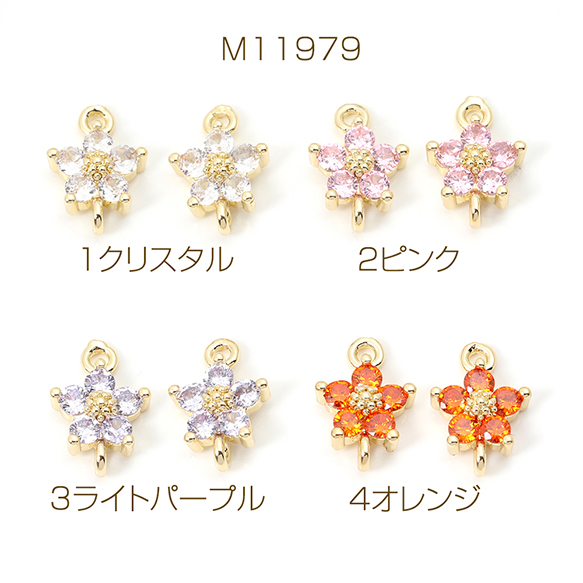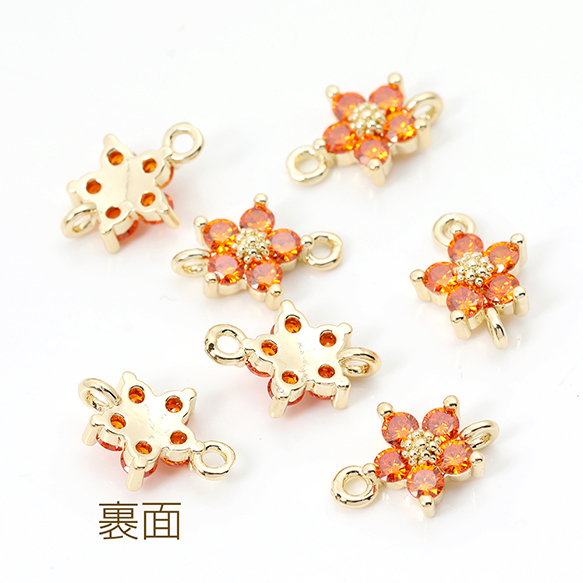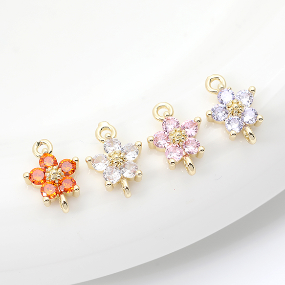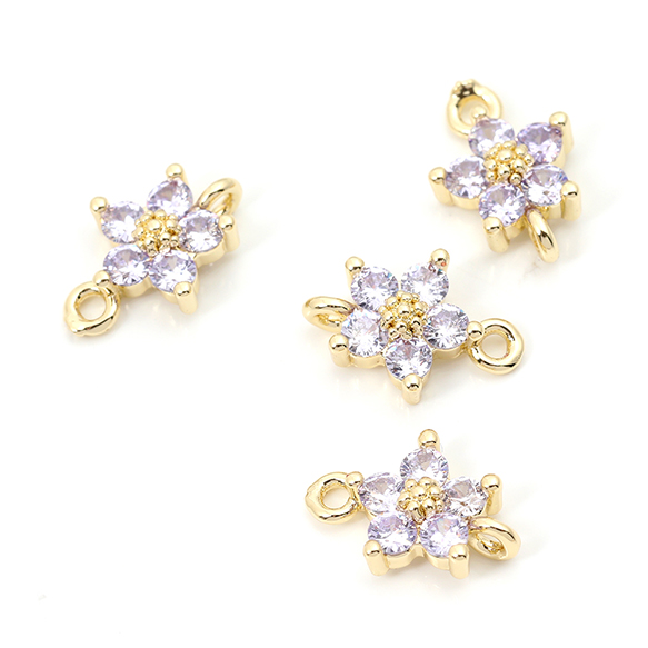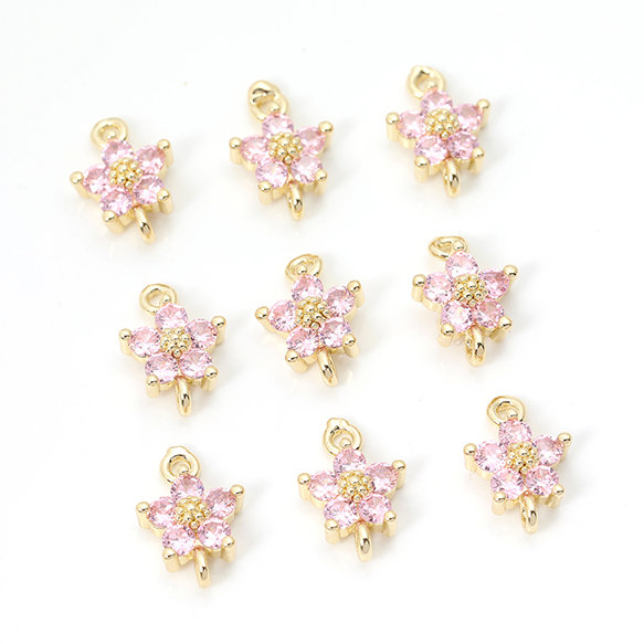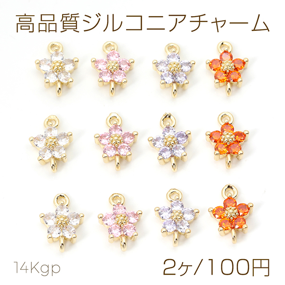 色褪せにくい14KGPゴールドメッキ 高品質ジルコニアチャーム フラワー 五弁花 2カン 8×12mm(2ヶ)