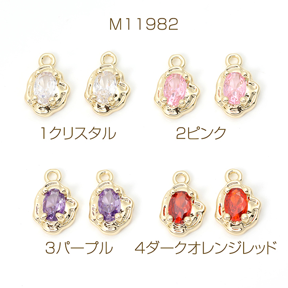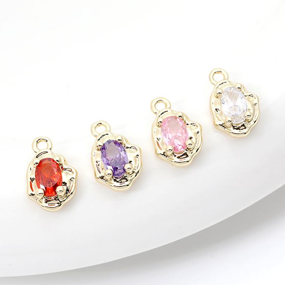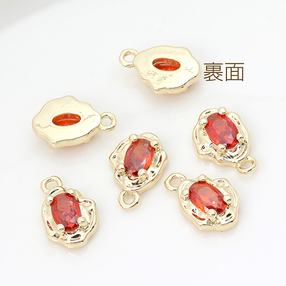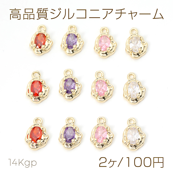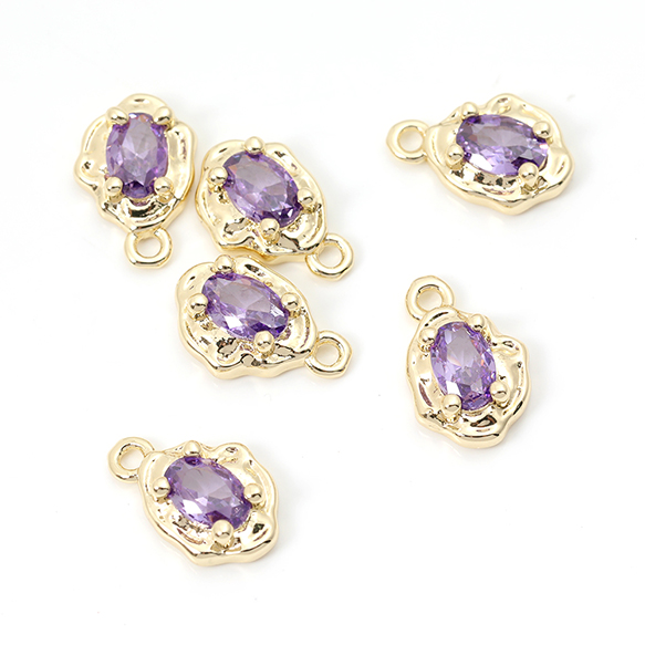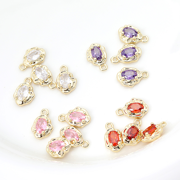 色褪せにくい14KGPゴールドメッキ 高品質ジルコニアチャーム 不規則オーバル 1カン 8×12mm(2ヶ)
