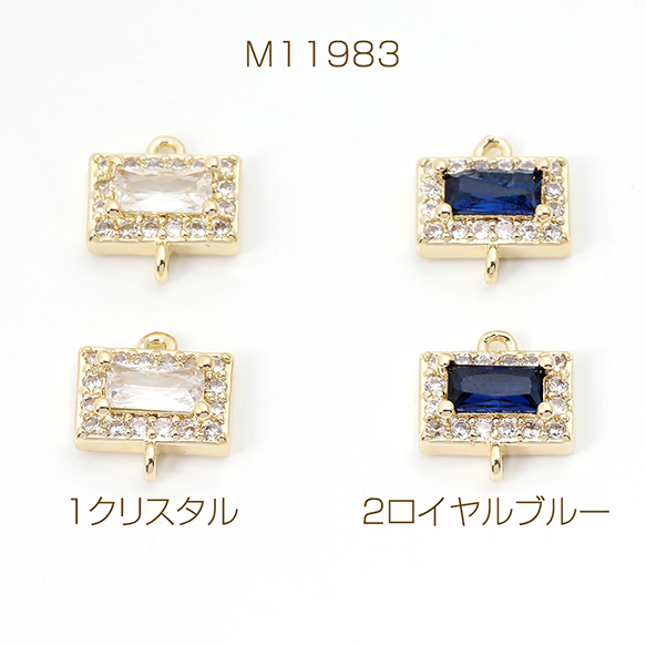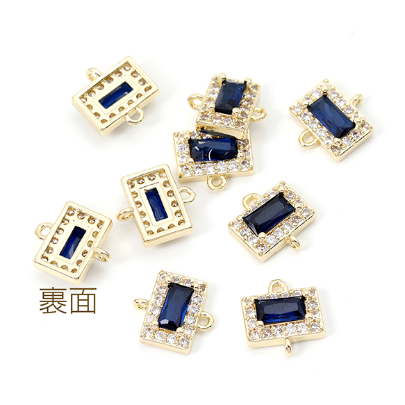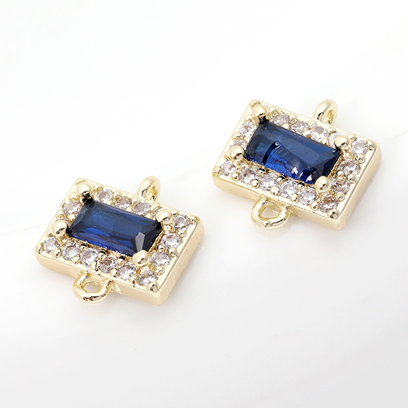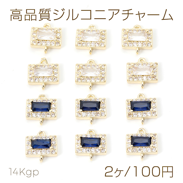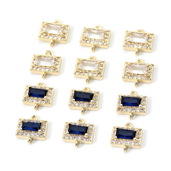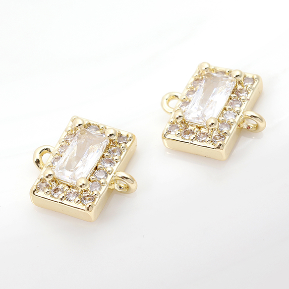 色褪せにくい14KGPゴールドメッキ 高品質ジルコニアチャーム 長方形型 2カン 9.5×10mm(2ヶ)