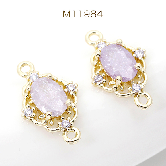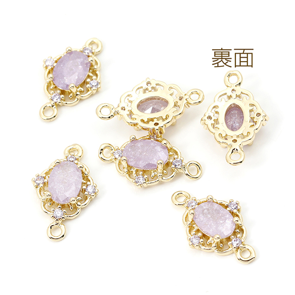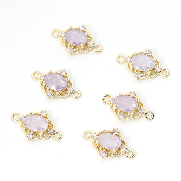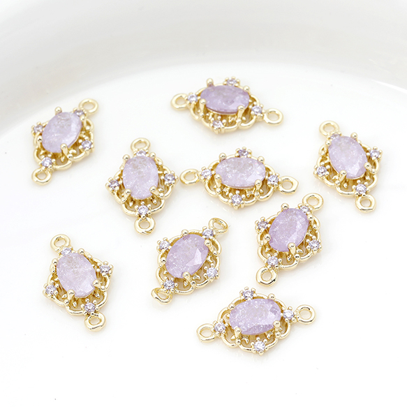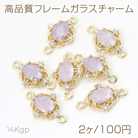 色褪せにくい14KGPゴールドメッキ 高品質フレームガラスチャーム オーバル 2カン 10×16.5mm(2ヶ)