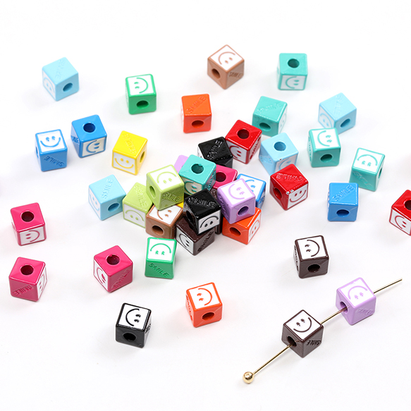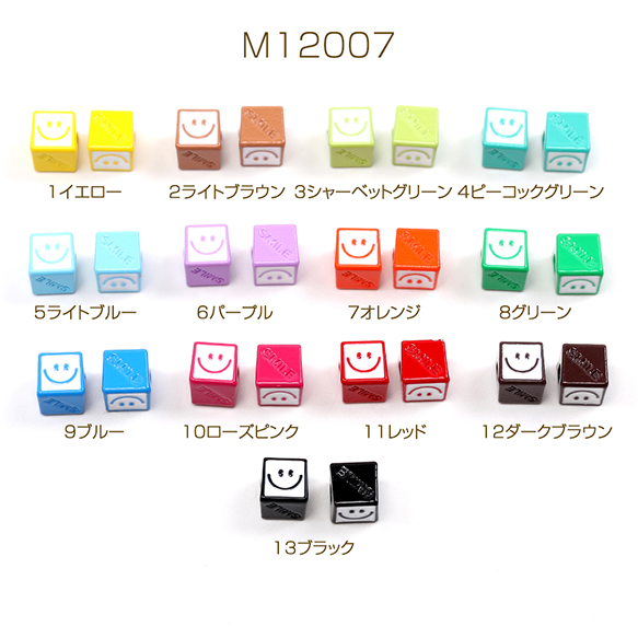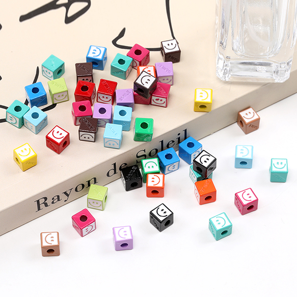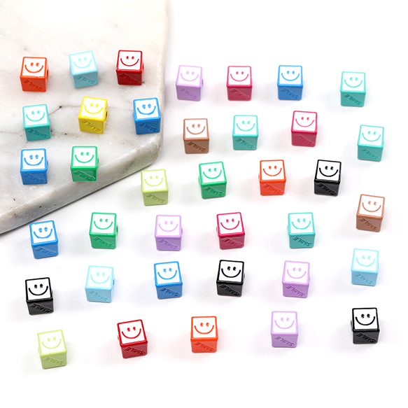 メタルビーズ 塗装 スクエア型 スマイリー 6.5mm(6ヶ)