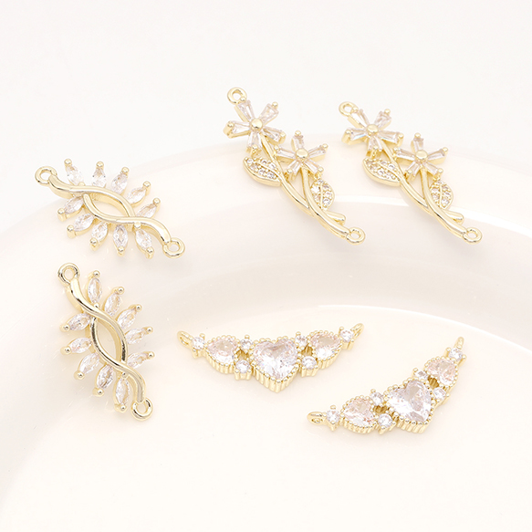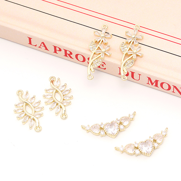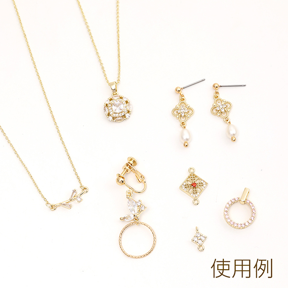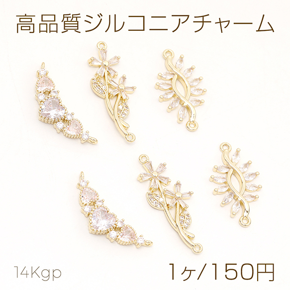 色褪せにくい14KGPゴールドメッキ 高品質ジルコニアチャーム 2カン
