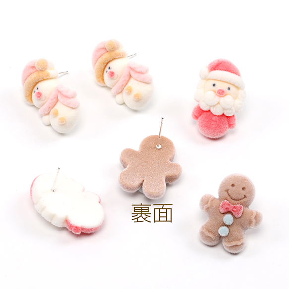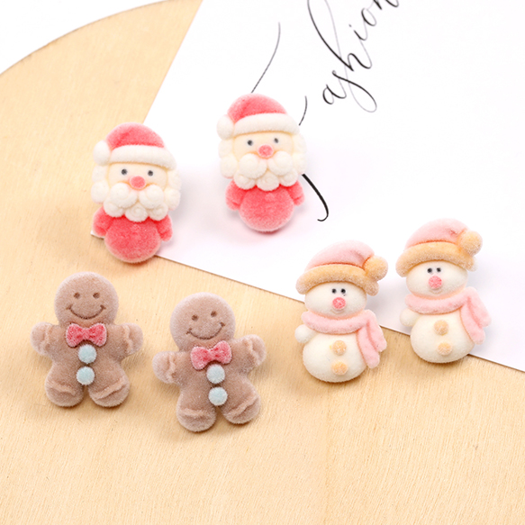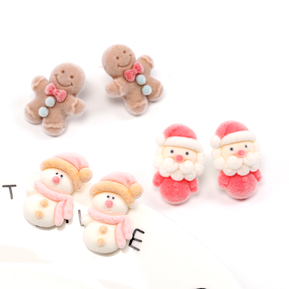 クリスマスピアス フロッキーピアス 雪だるま サンタクロース ジンジャーブレッドマン(1ペア)