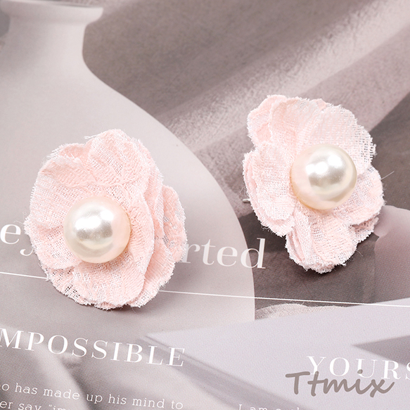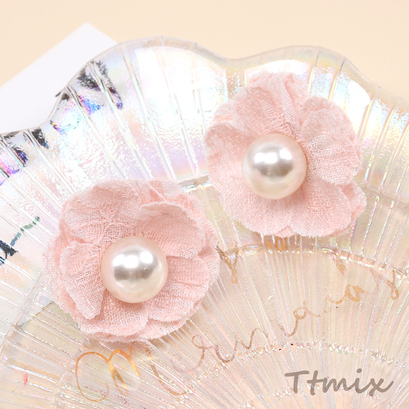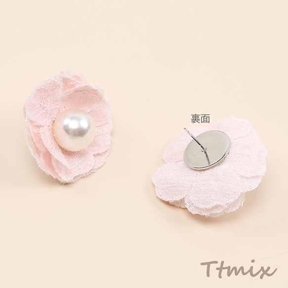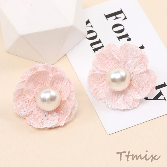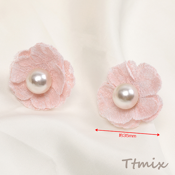 デザインピアス フラワーのピアス パール付き 35mm ピンク(1ペア)