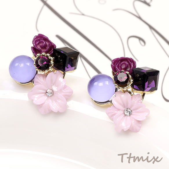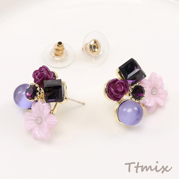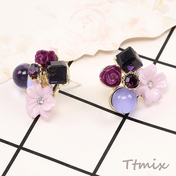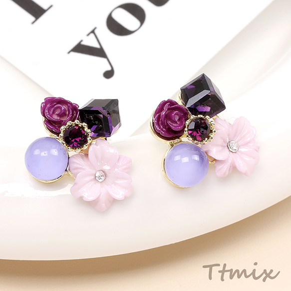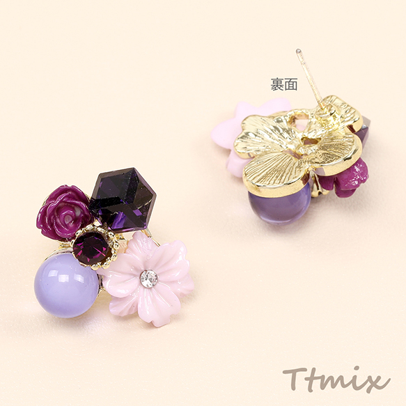 デザインピアス フラワーのピアス 20×21mm パープル(1ペア)