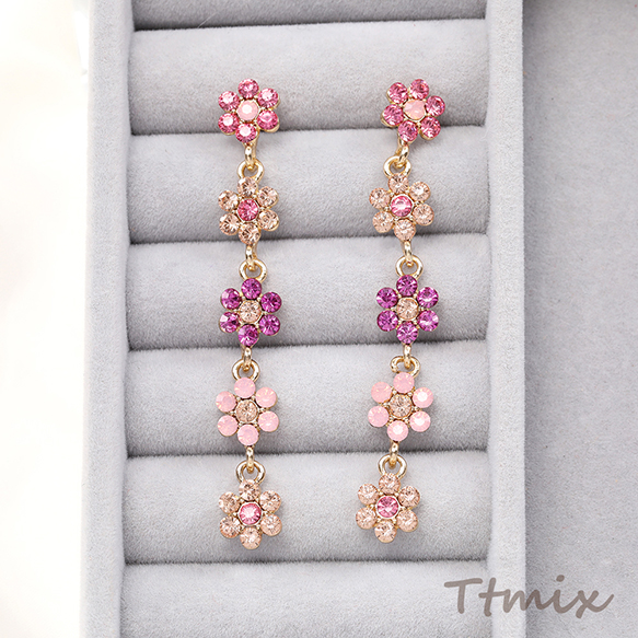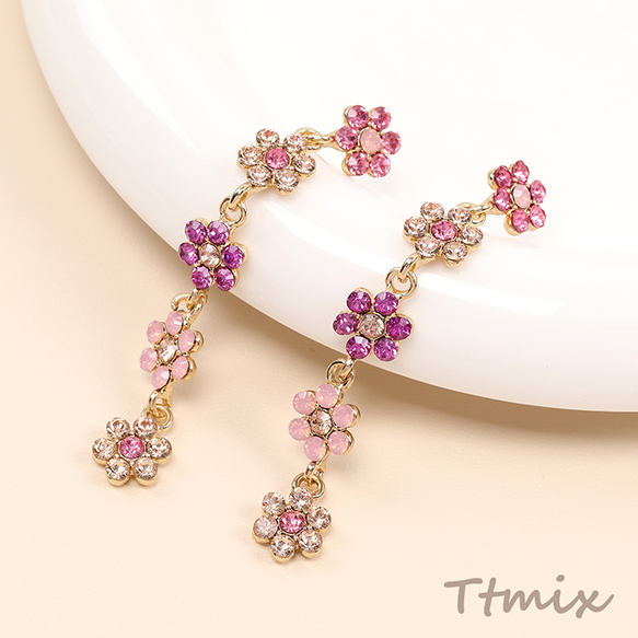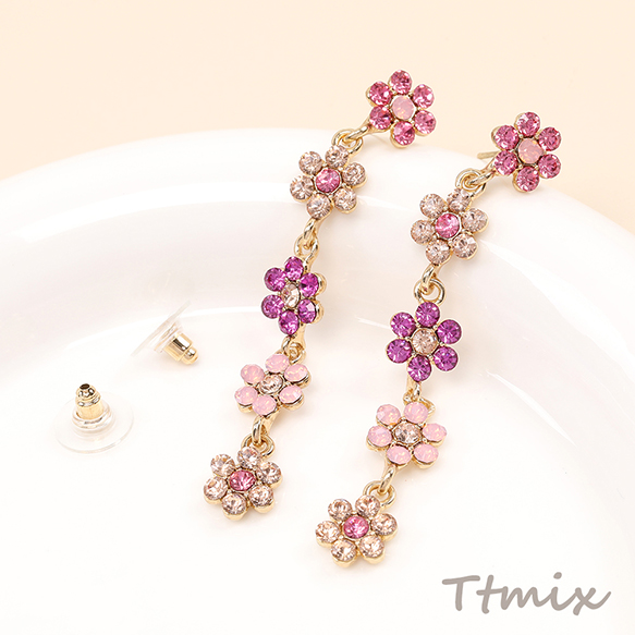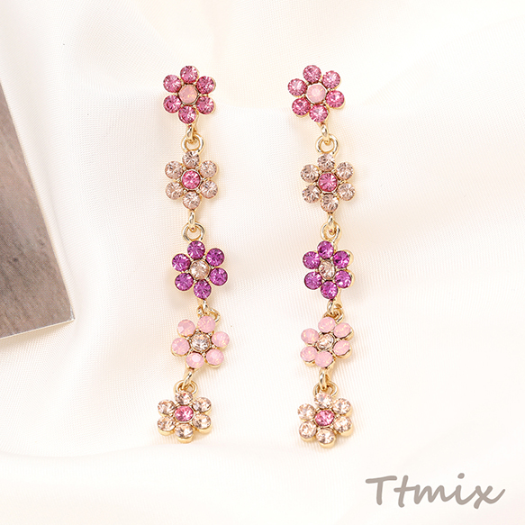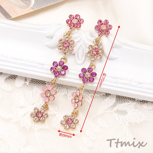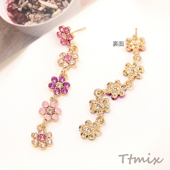 デザインピアス 5連フラワーのピアス 9×70mm(1ペア)