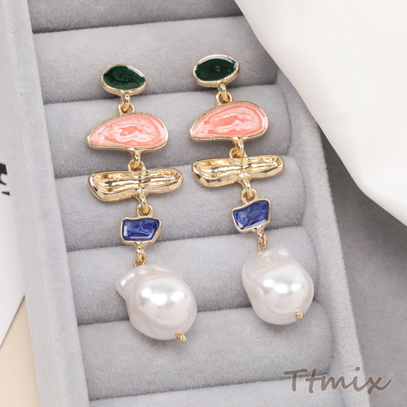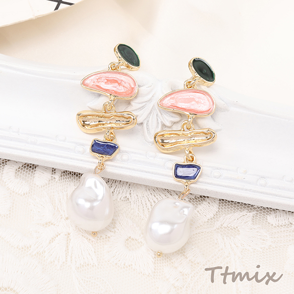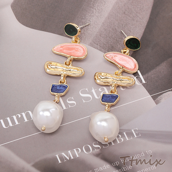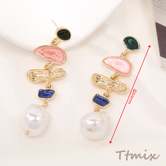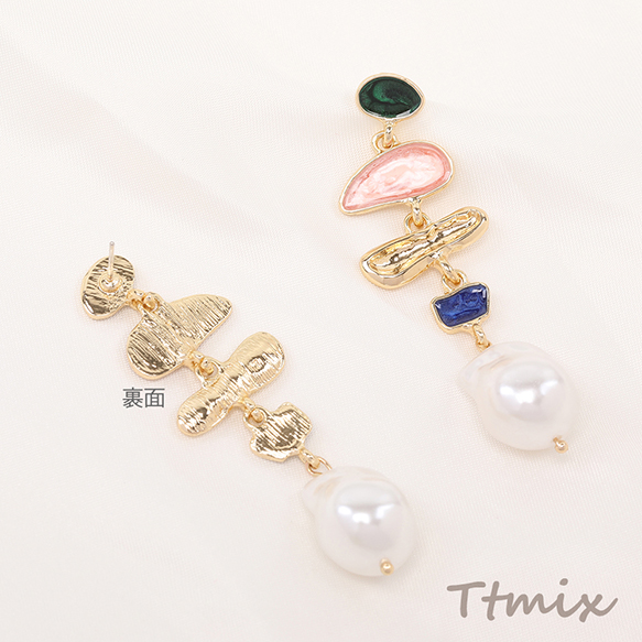 デザインピアス 不規則型 パール付き 64mm(1ペア)