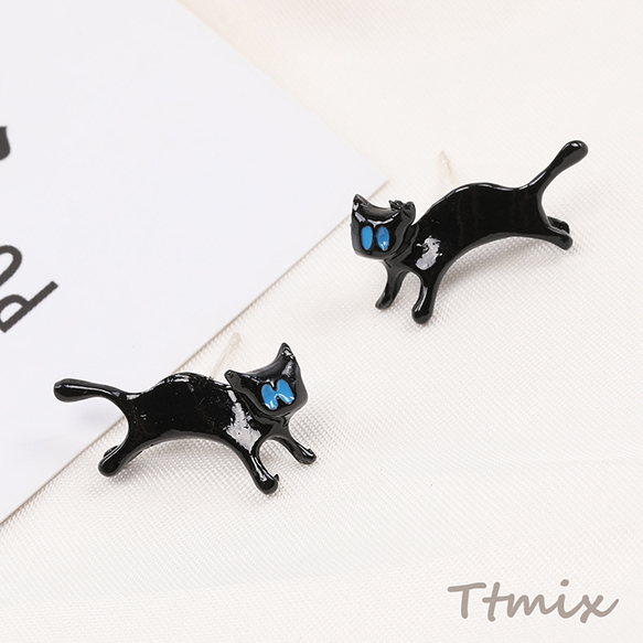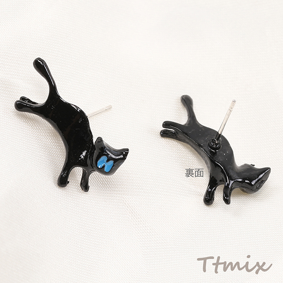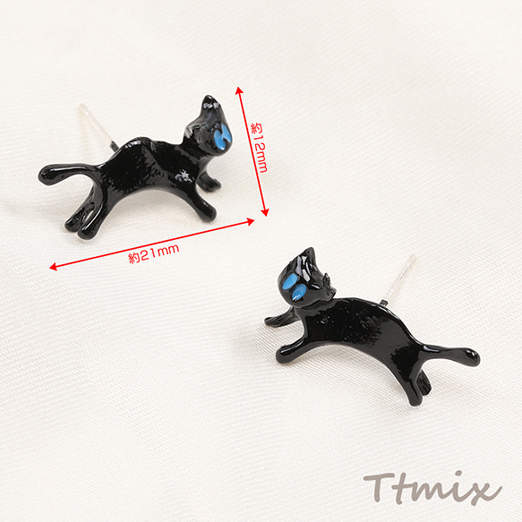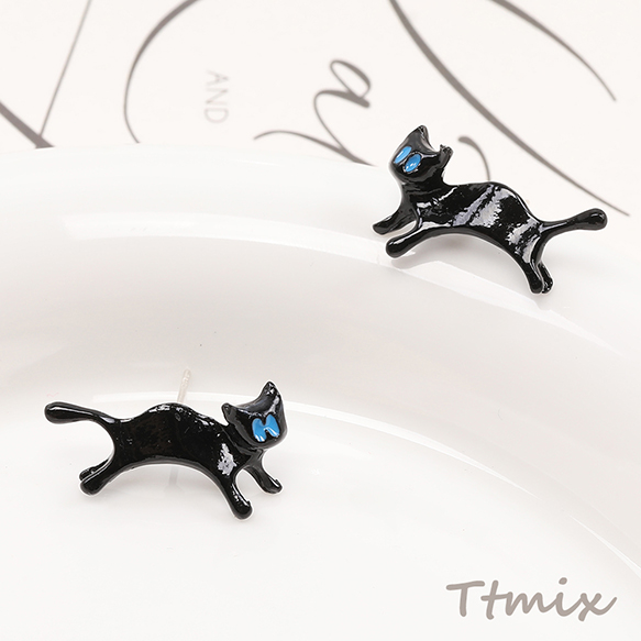 デザインピアス 猫のピアス 12×21mm ブラック(1ペア)