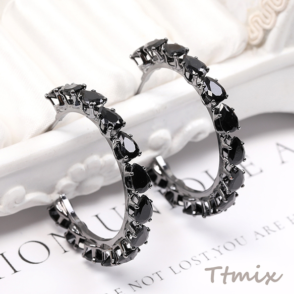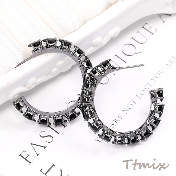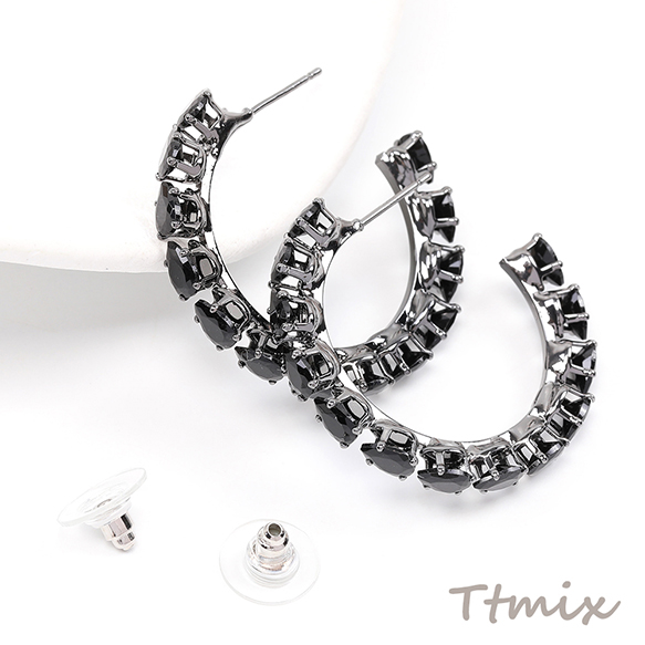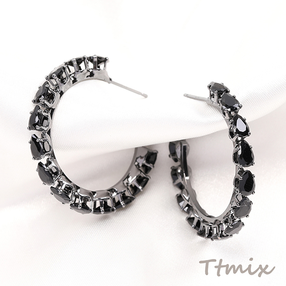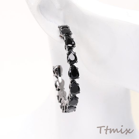 デザインピアス Cフープ 36.5mm ブラック(1ペア)