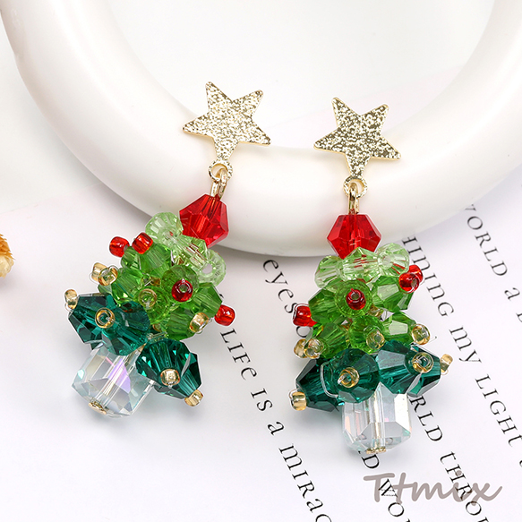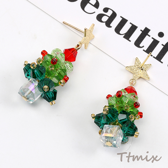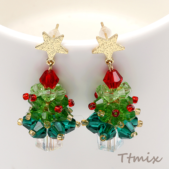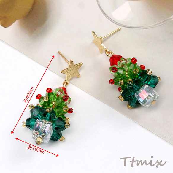 デザインピアス クリスマスツリーのピアス 16×40mm(1ペア)