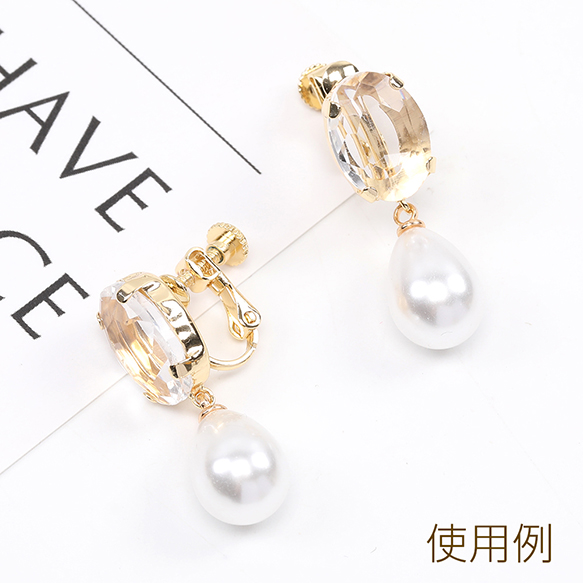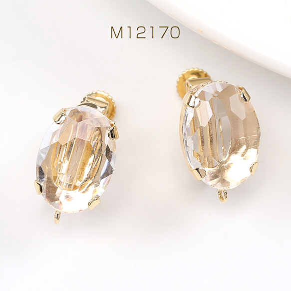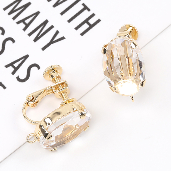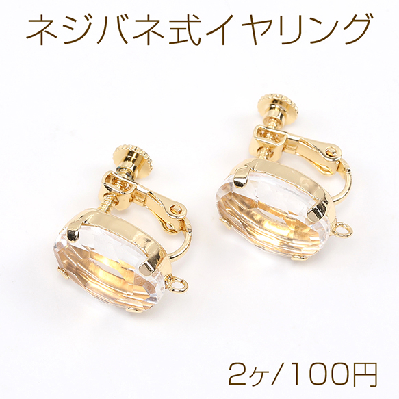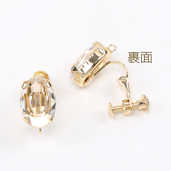 ネジバネ式イヤリング オーバル 1カン ラインストーン付き 10×14mm ゴールド(2ヶ)