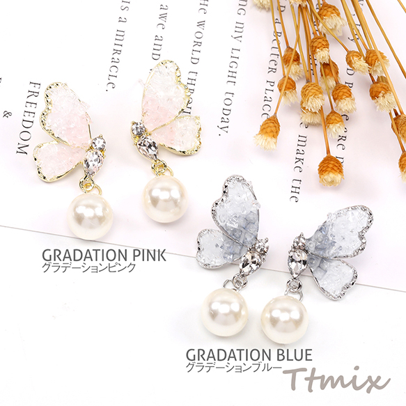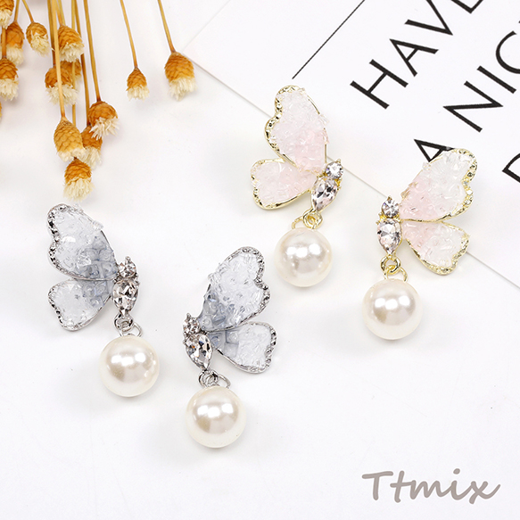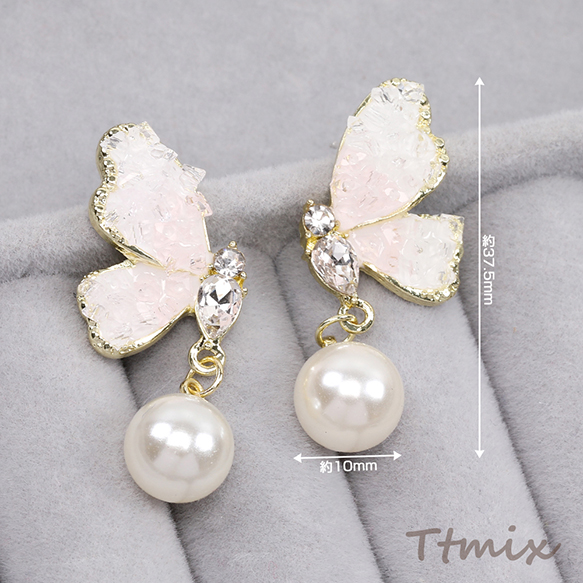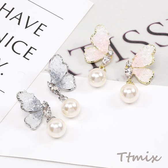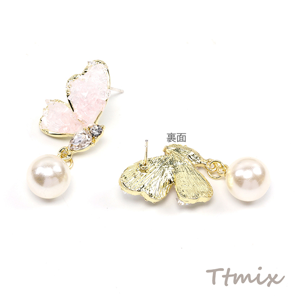 デザインピアス パール&蝶のピアス 10×37.5mm(1ペア)