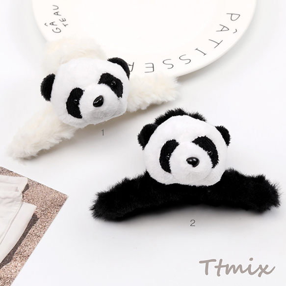バンスクリップ アクリルヘアクリップ フェイクファー付き パンダ 6×12cm