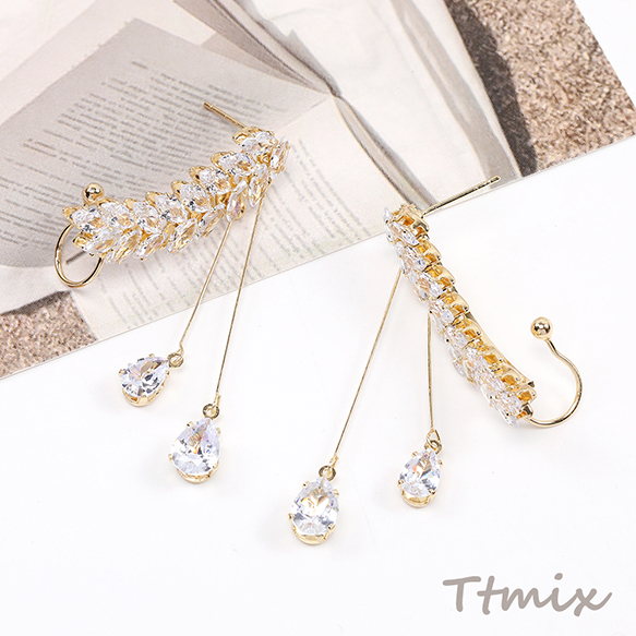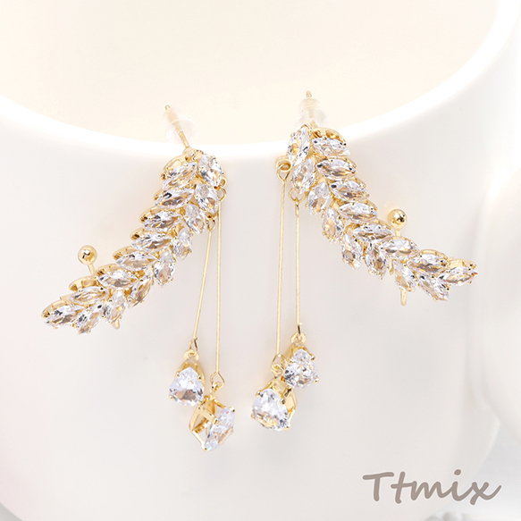 デザインピアス ジルコニアピアス リーフ 47mm(1ペア)