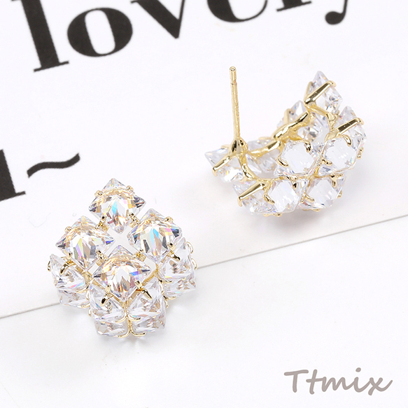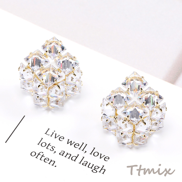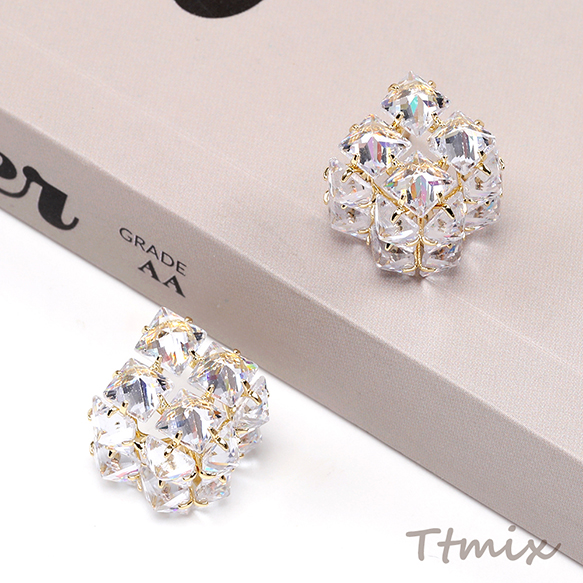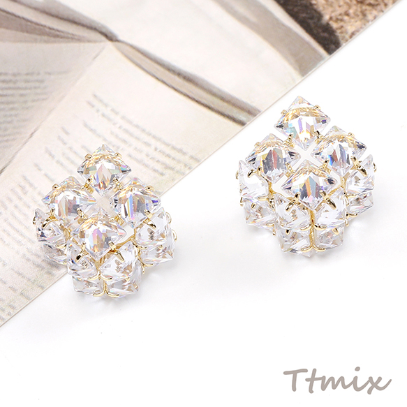 デザインピアス ラインストーンピアス ひし形 18mm(1ペア)