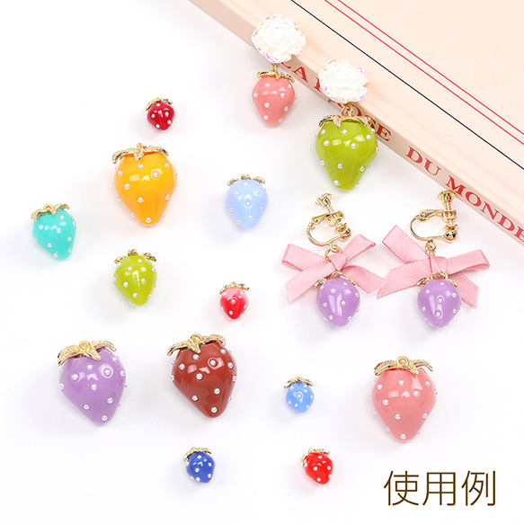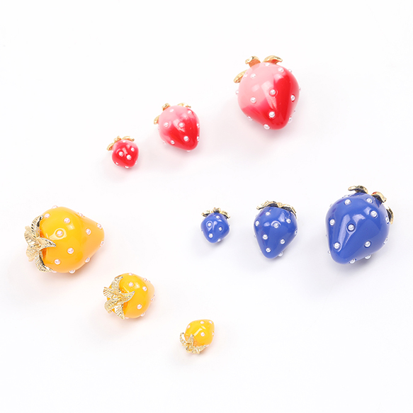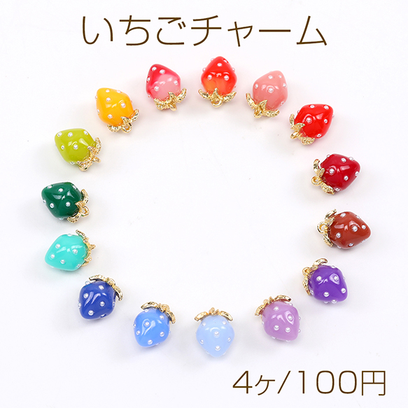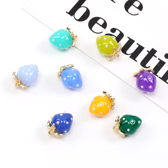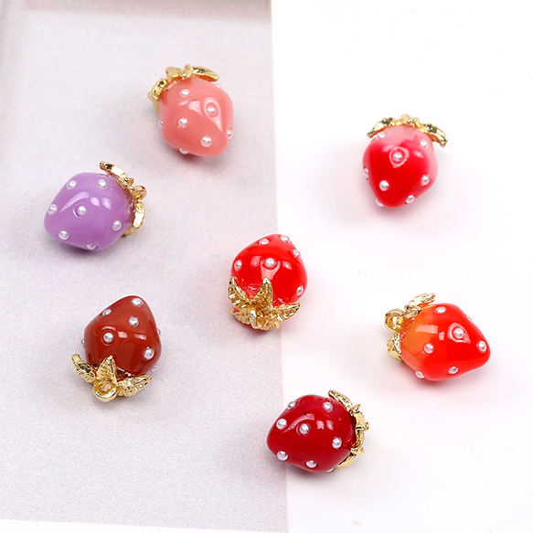 いちごチャーム 樹脂製イチゴチャーム かわいいフルーツチャーム 苺チャーム パール付き ゴールド 8×11mm(4ヶ)