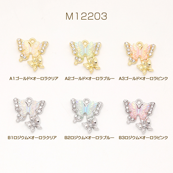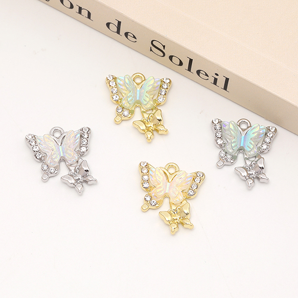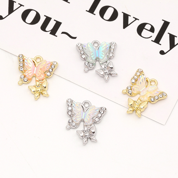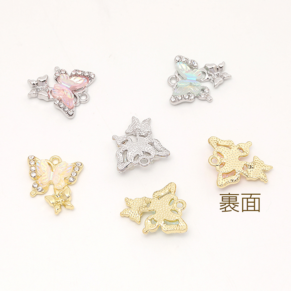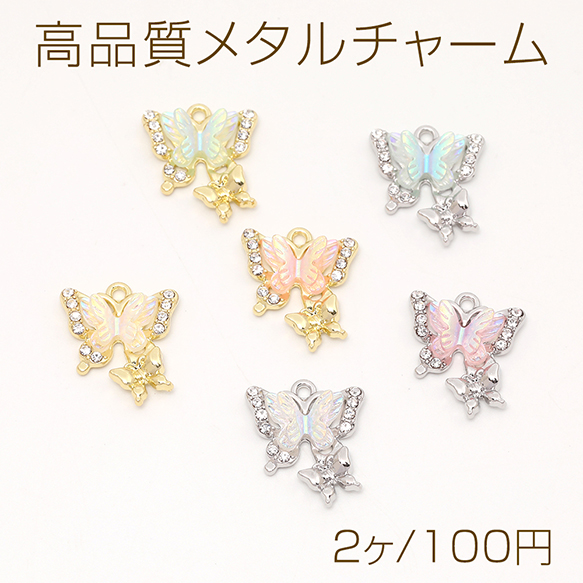 高品質メタルチャーム 2連蝶 ジルコニア&樹脂蝶付き 1カン 16.5×20.5mm(2ヶ)