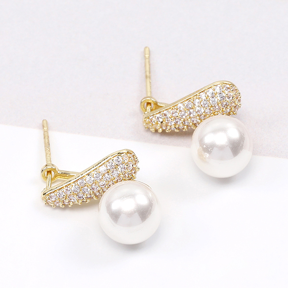 卸売デザインピアス ジルコニアピアス しずく型 パール付き 15mm
