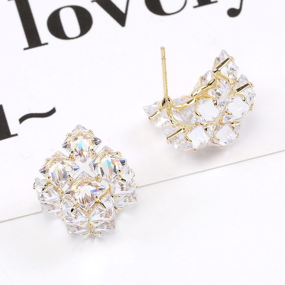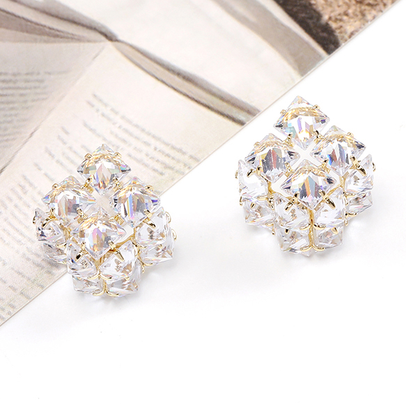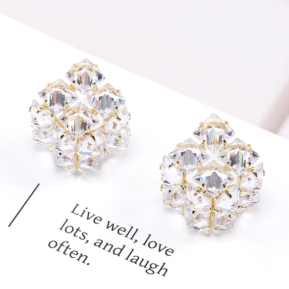 卸売デザインピアス ラインストーンピアス ひし形 18mm