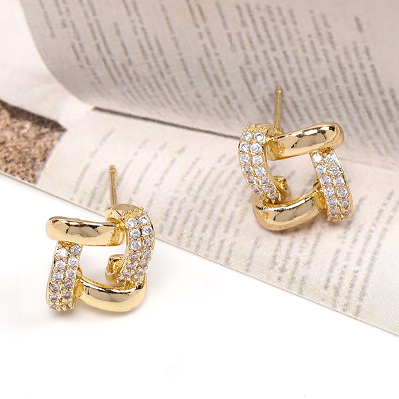 卸売デザインピアス ジルコニアピアス ひし形 14×15mm