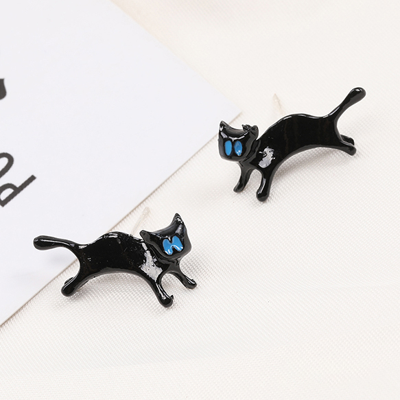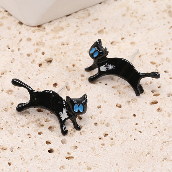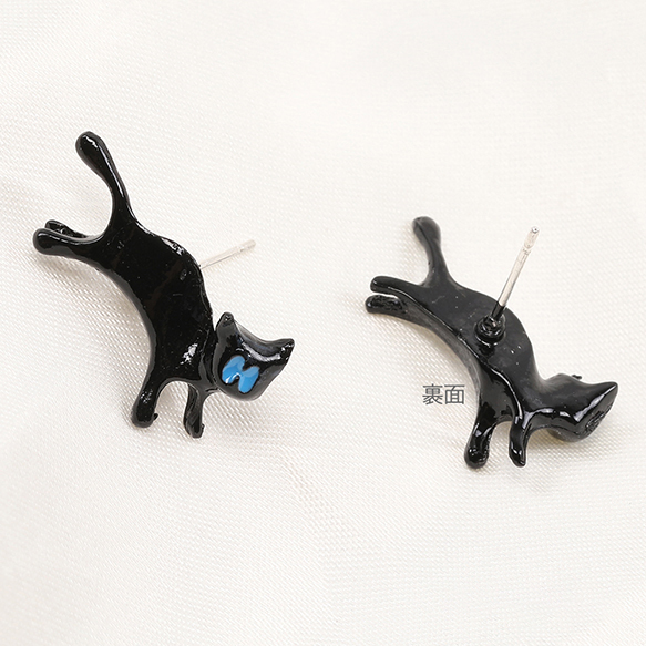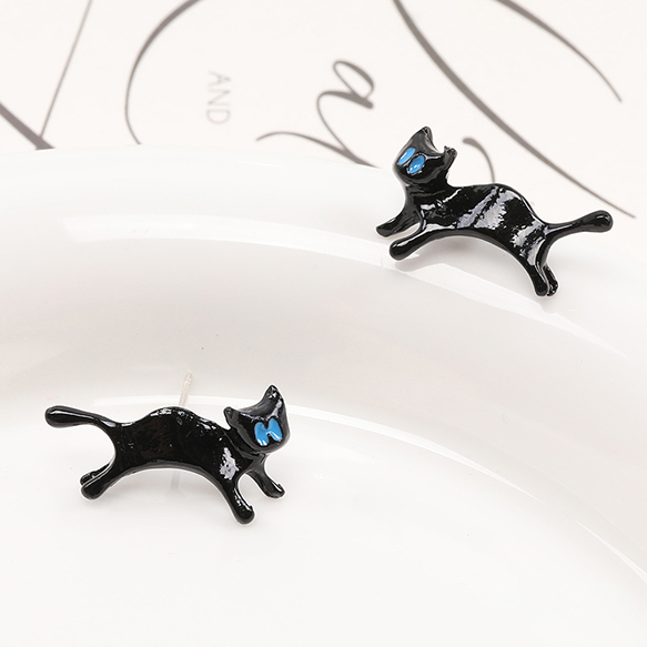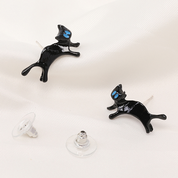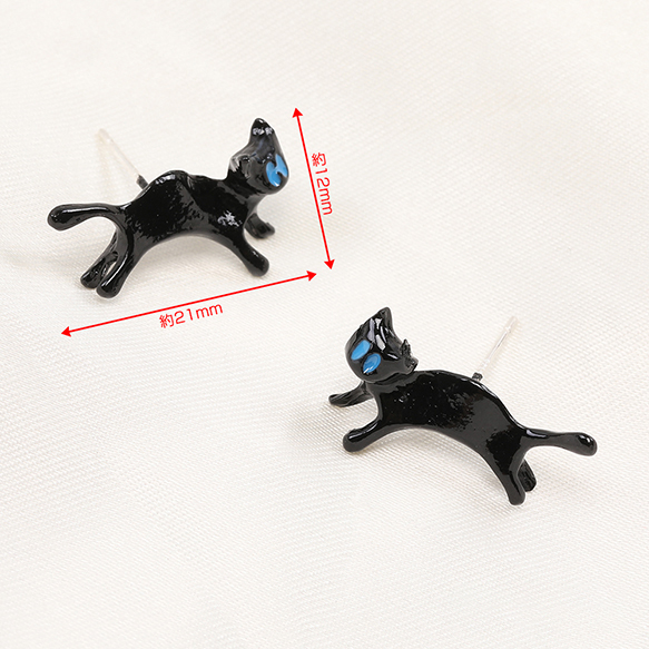 卸売デザインピアス 猫のピアス 12×21mm ブラック