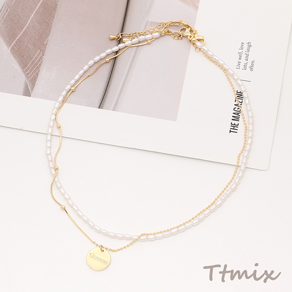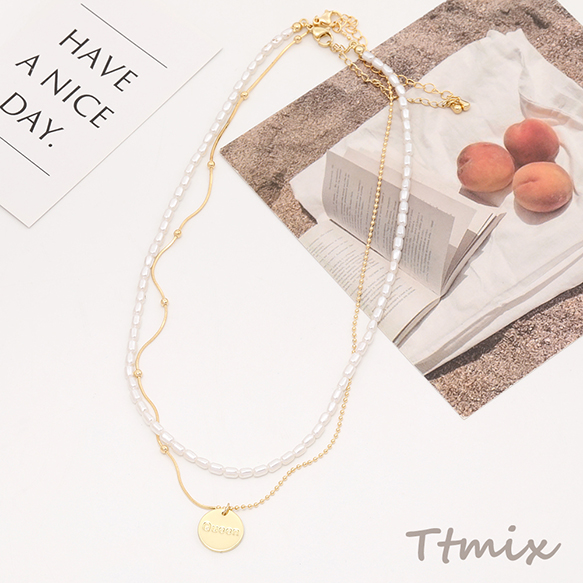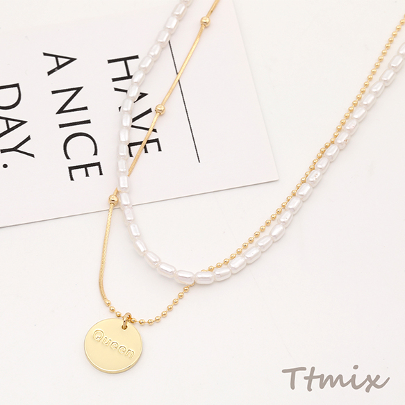 ネックレス メタルチェーンネックレス&パールネックレス プレート(1連)