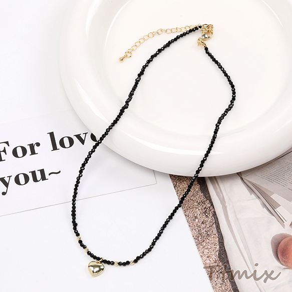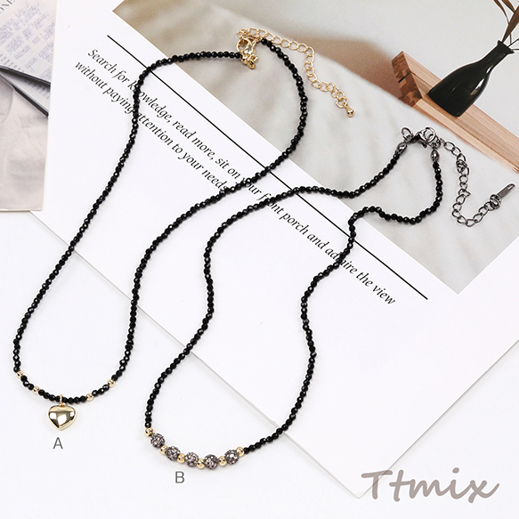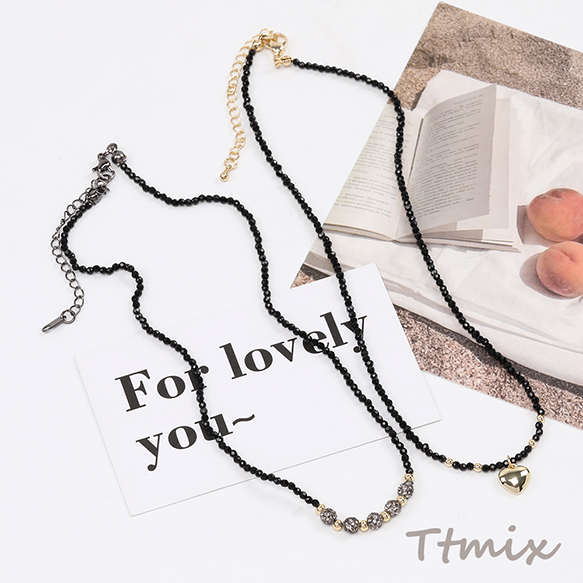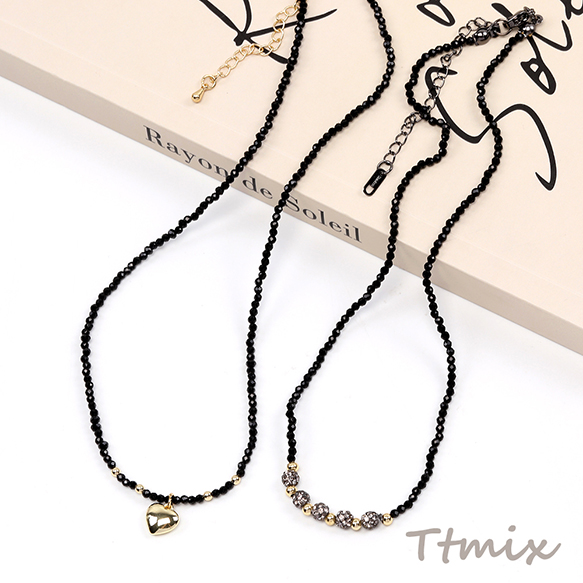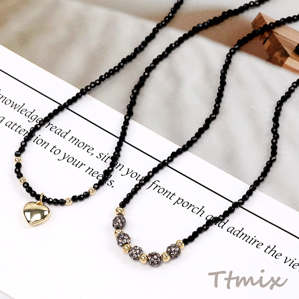 ネックレス ガラスビーズネックレス ハート型 ボール ブラック