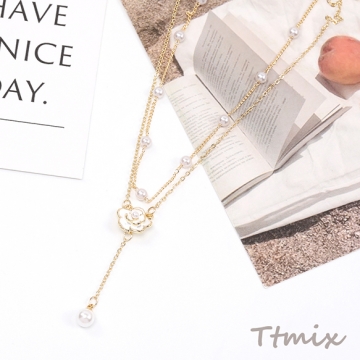 卸売ネックレス メタルチェーンネックレス パール付き フラワー