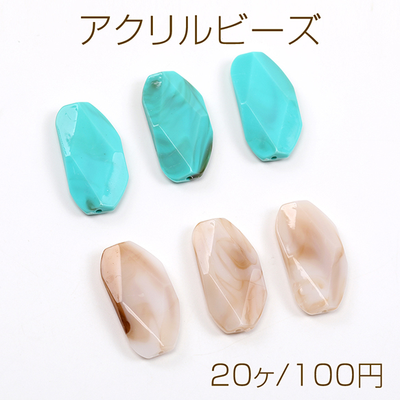 アクリルビーズ 不規則型 16×31mm グラデーションカラー(20ヶ)